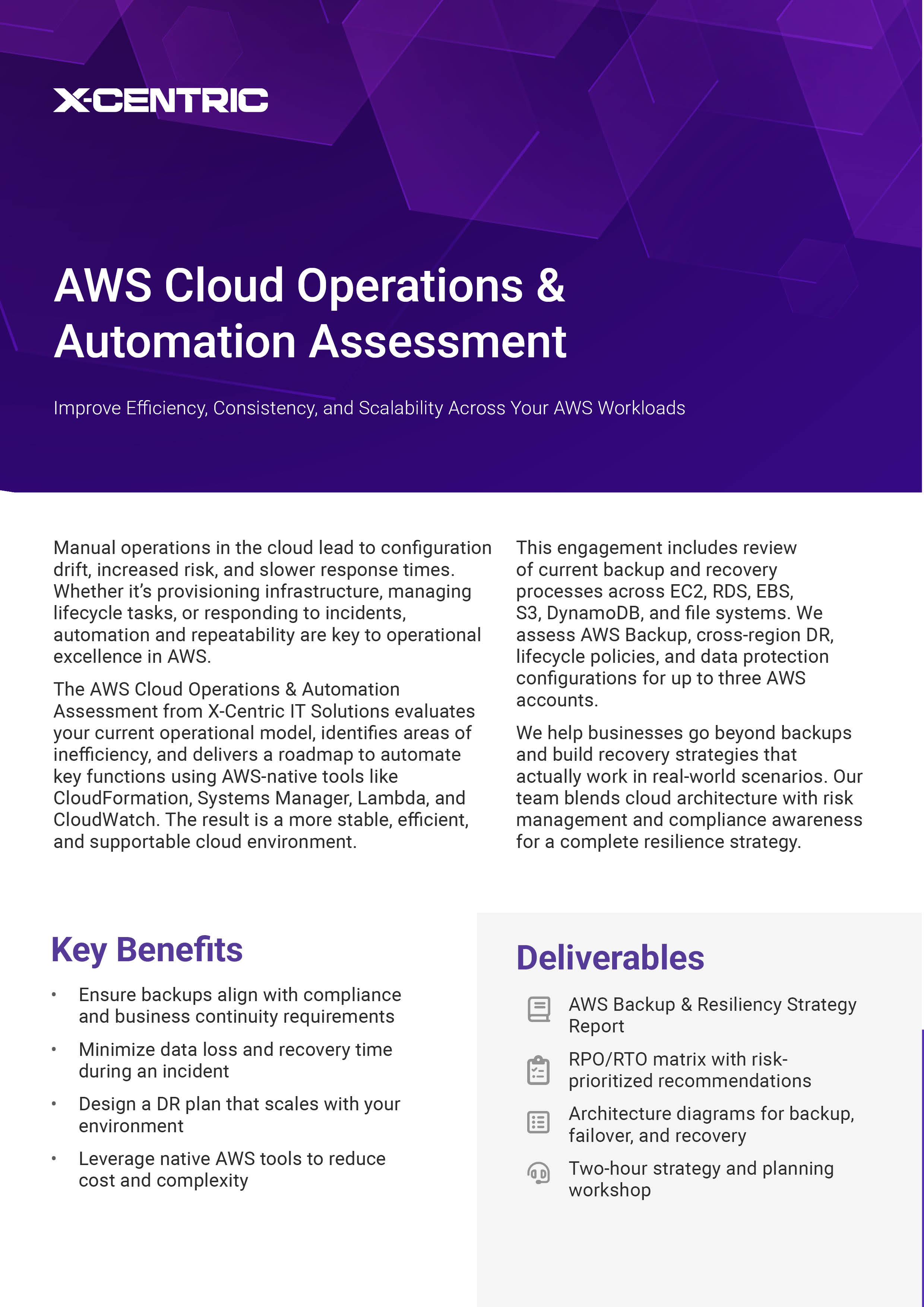 As AWS environments scale, manual processes create risk and inefficiency. Our Cloud Operations & Automation Assessment evaluates your operational maturity and identifies automation opportunities to streamline management and reduce overhead.
